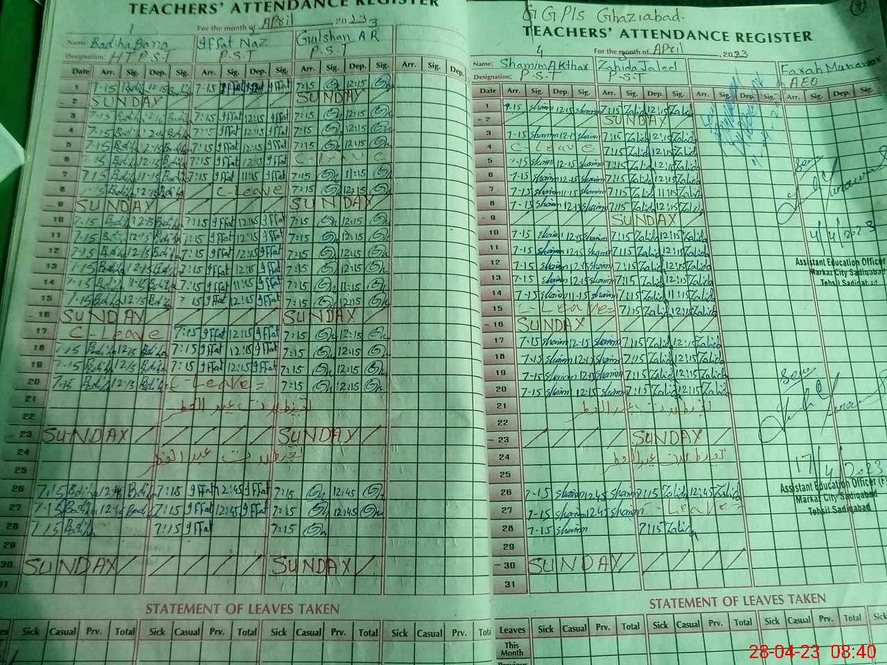 | Monitoring Date: 28-04-2023 | Start Time: 28-04-2023 07:52 AM | End Time: 28-04-2023 08:40 AM | Name of MEA: Ak**** Hu**** Bh**** | |