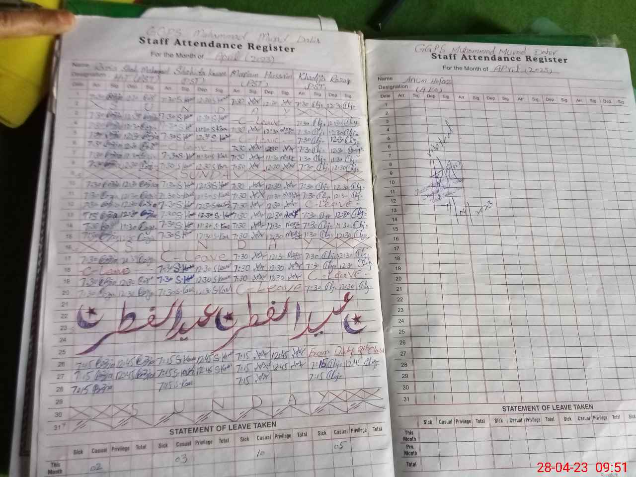 | Leave | Duty | Absent | Maternity | Medical | Ex- Pak |