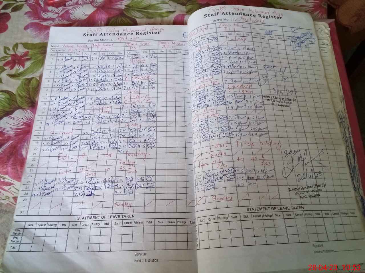 | Name: SH**** KO**** Designation: (School Headmaster's/Headmistress's) PST Phone/Cell Number: 03**** |