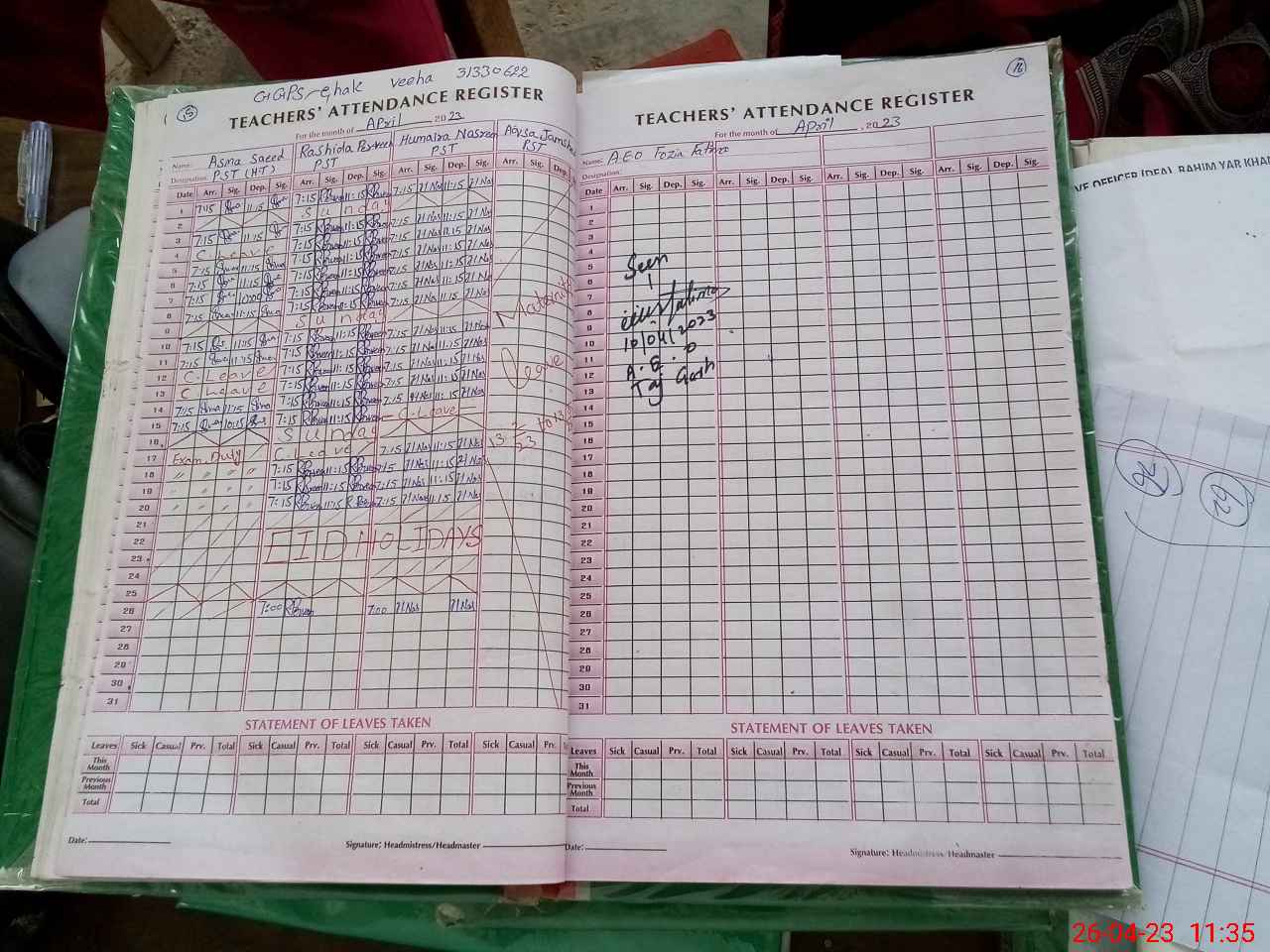 | 31**** | As**** Sa**** | PST | Regular | 0 | 0 | 0 | 0 | 0 | 0 | 0 | 0 | 0 | Exam Duty |