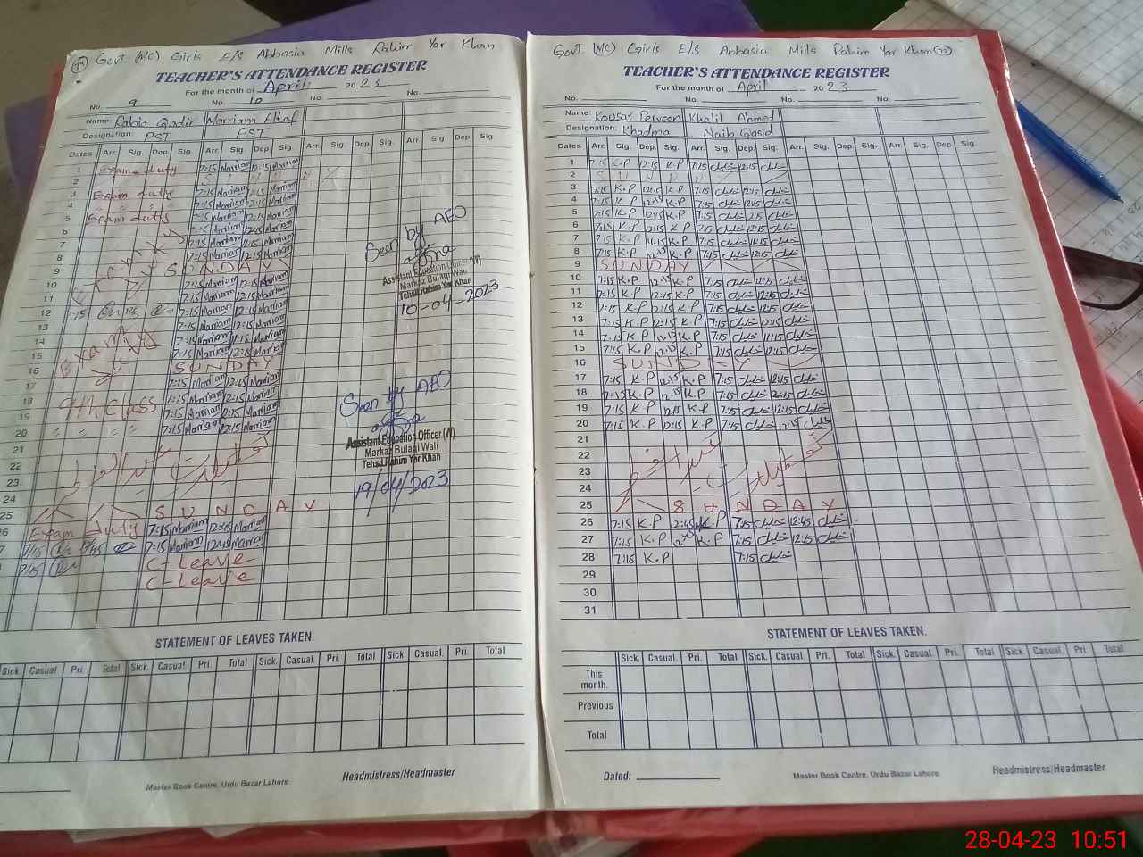 | Leave | Duty | Absent | Maternity | Medical | Ex- Pak |