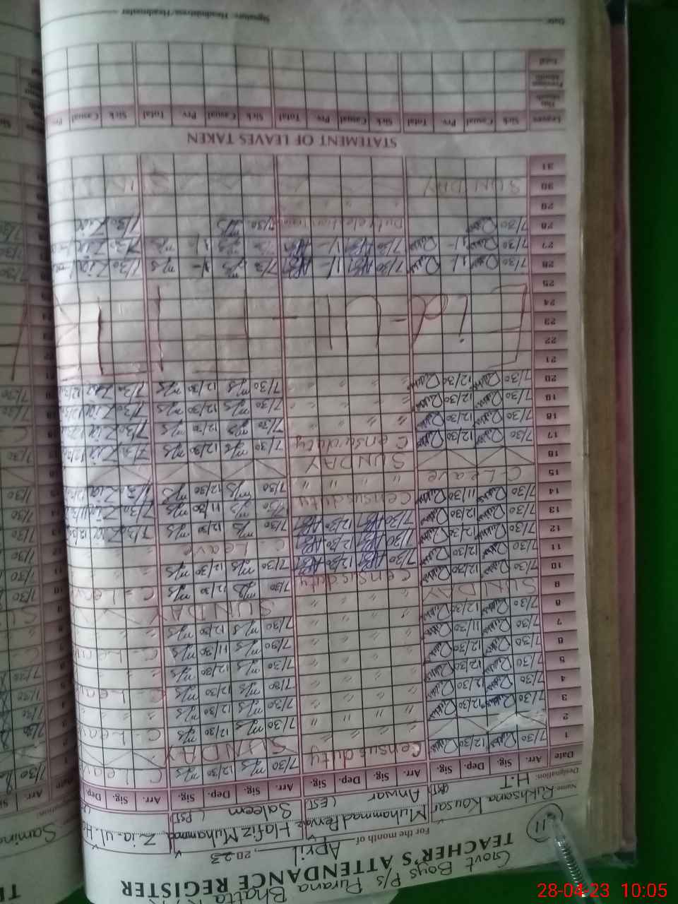 | Leave | Duty | Absent | Maternity | Medical | Ex- Pak |