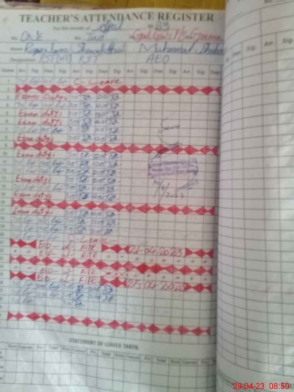 | Name: RU**** NA**** Designation: (School Headmaster's/Headmistress's) PST Phone/Cell Number: 03**** |