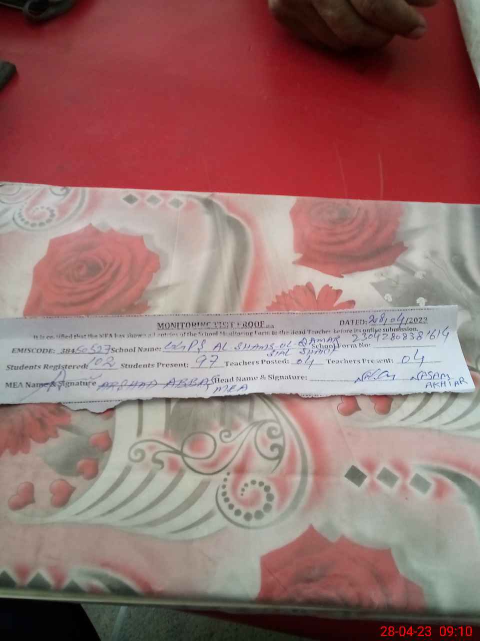 | EMIS Code: 38450527 | Name of School: GGPS AL-SHAMAS-UL-QAMAR (NEW NAME) | |||