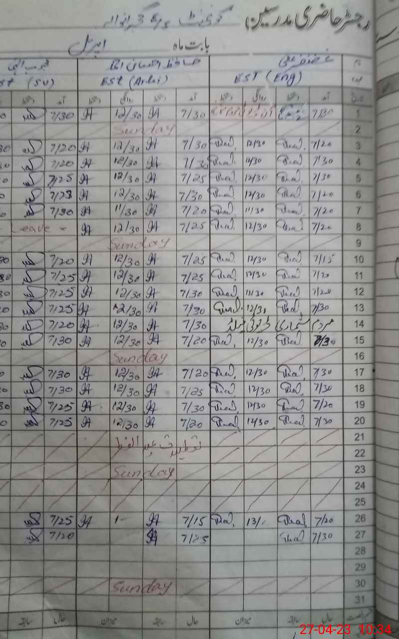 | CNIC | Full Name | Designation | R/C | Absence During Last Calender Month |