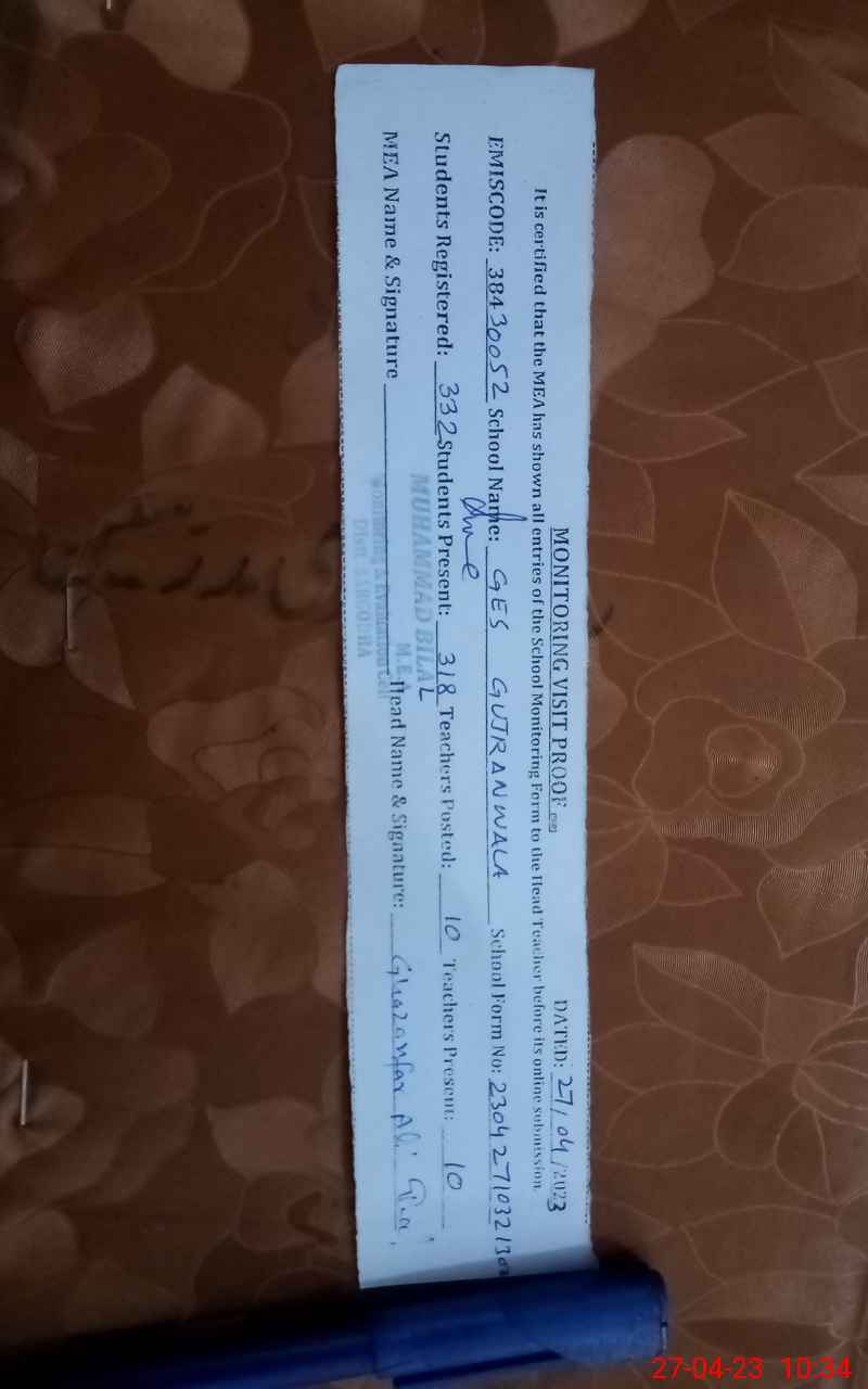 | EMIS Code: 38430051 | Name of School: GES GUJRAN WALA | |||