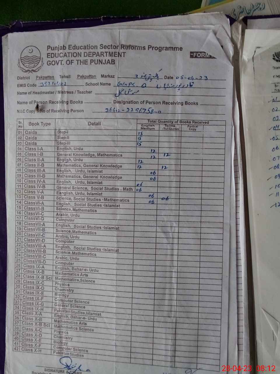 | Textbook Sets Received in the School | 15 | 12 | 12 | 6 | 6 | 6 | 0 | 0 | 0 | 0 | 0 |