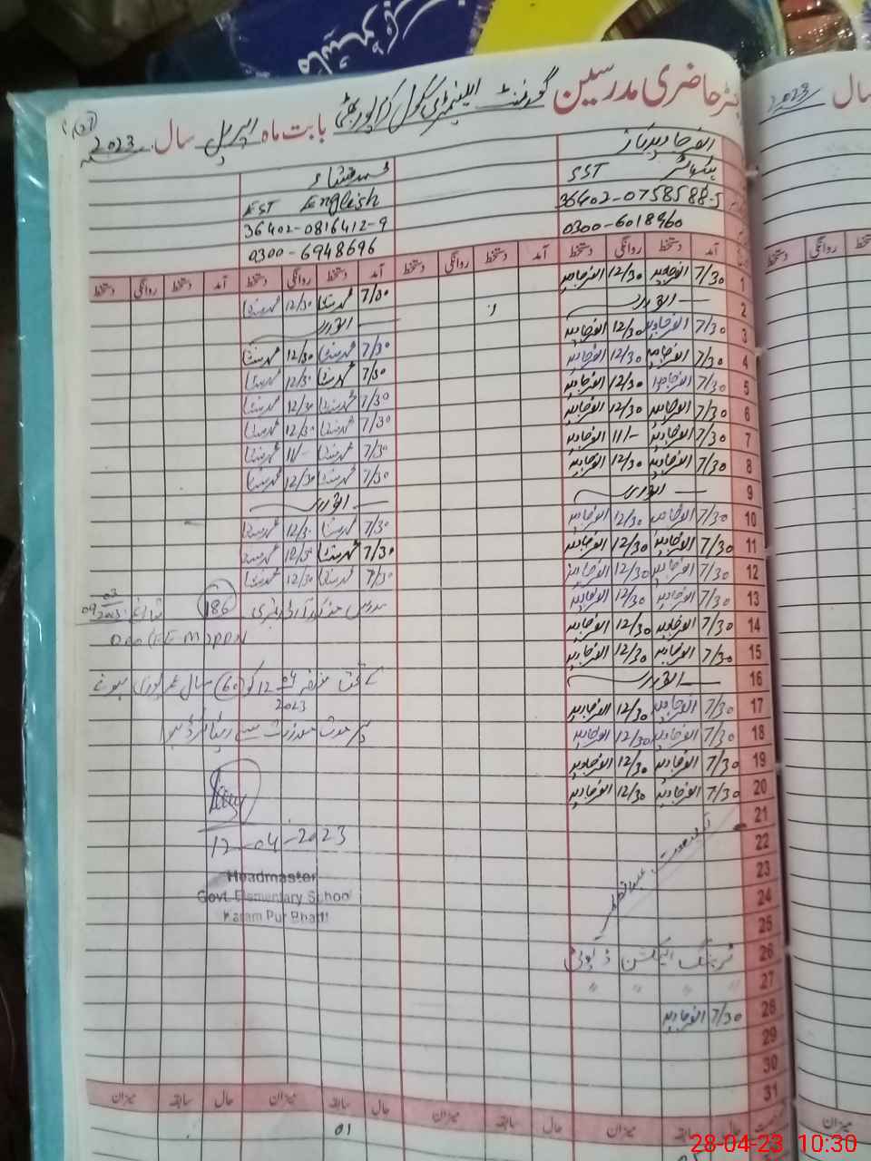 | Name: AN**** JA**** NA**** Designation: (School Headmaster's/Headmistress's) S.S.T.(GEN) Phone/Cell Number: 03**** |