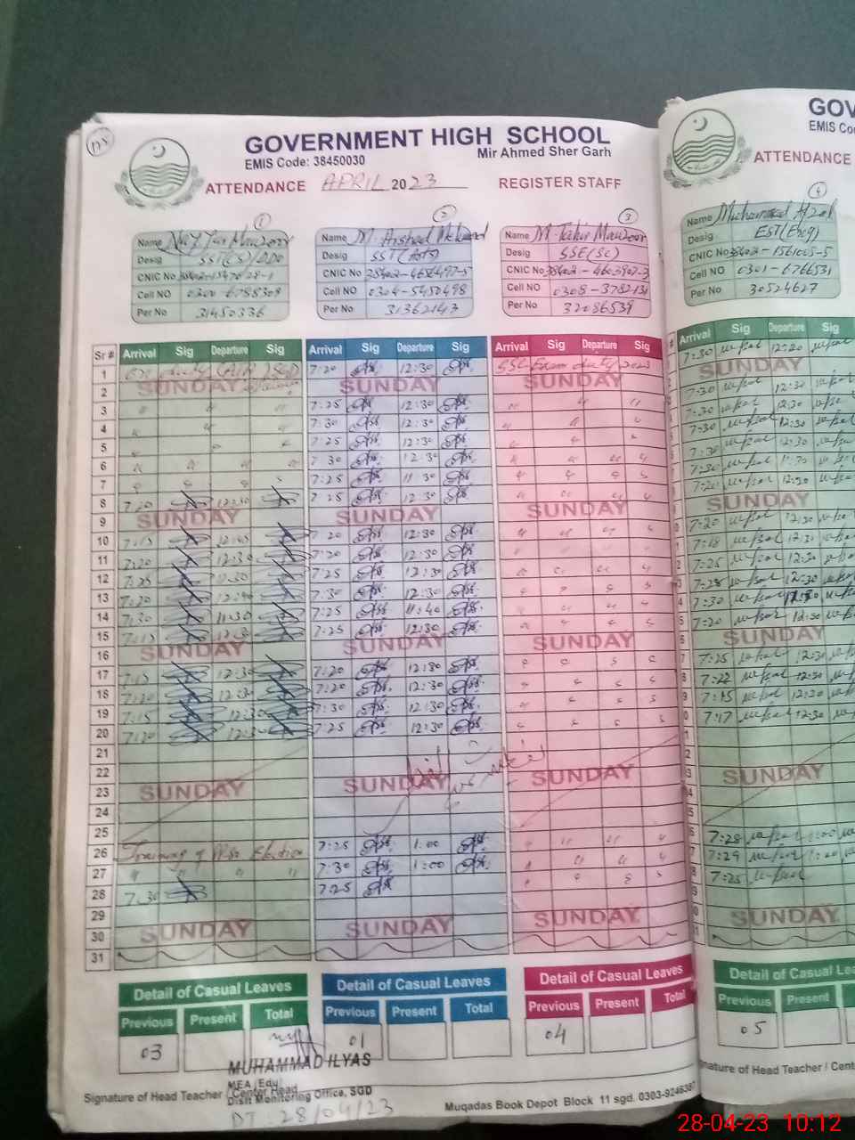 | CNIC | Full Name | Designation | R/C | Absence During Last Calender Month |
