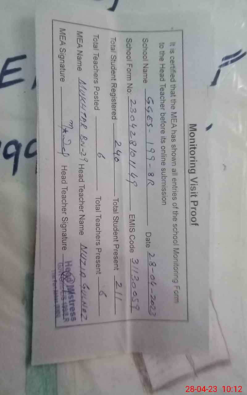 | EMIS Code: 31130049 | Name of School: GGES CHAK NO. 199/8-R | |||