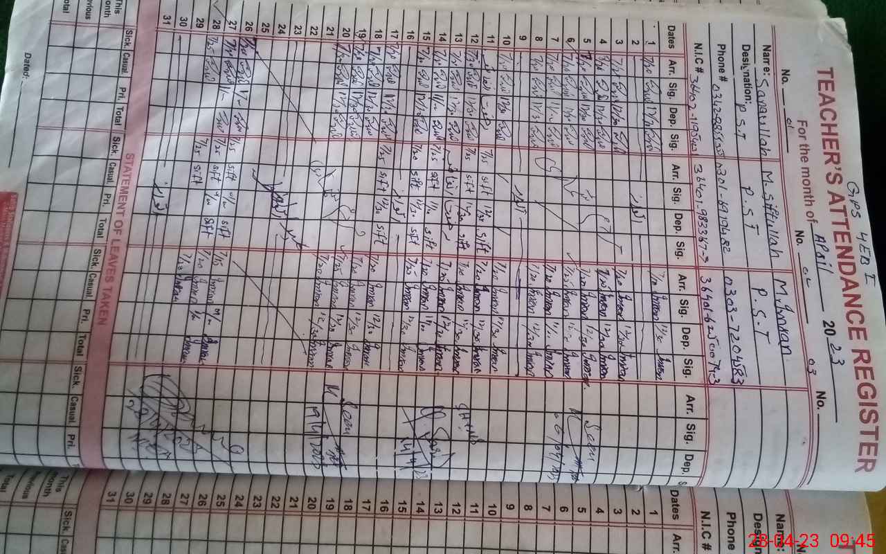 | Name: SA**** UL**** Designation: (School Headmaster's/Headmistress's) PST Phone/Cell Number: 03**** |