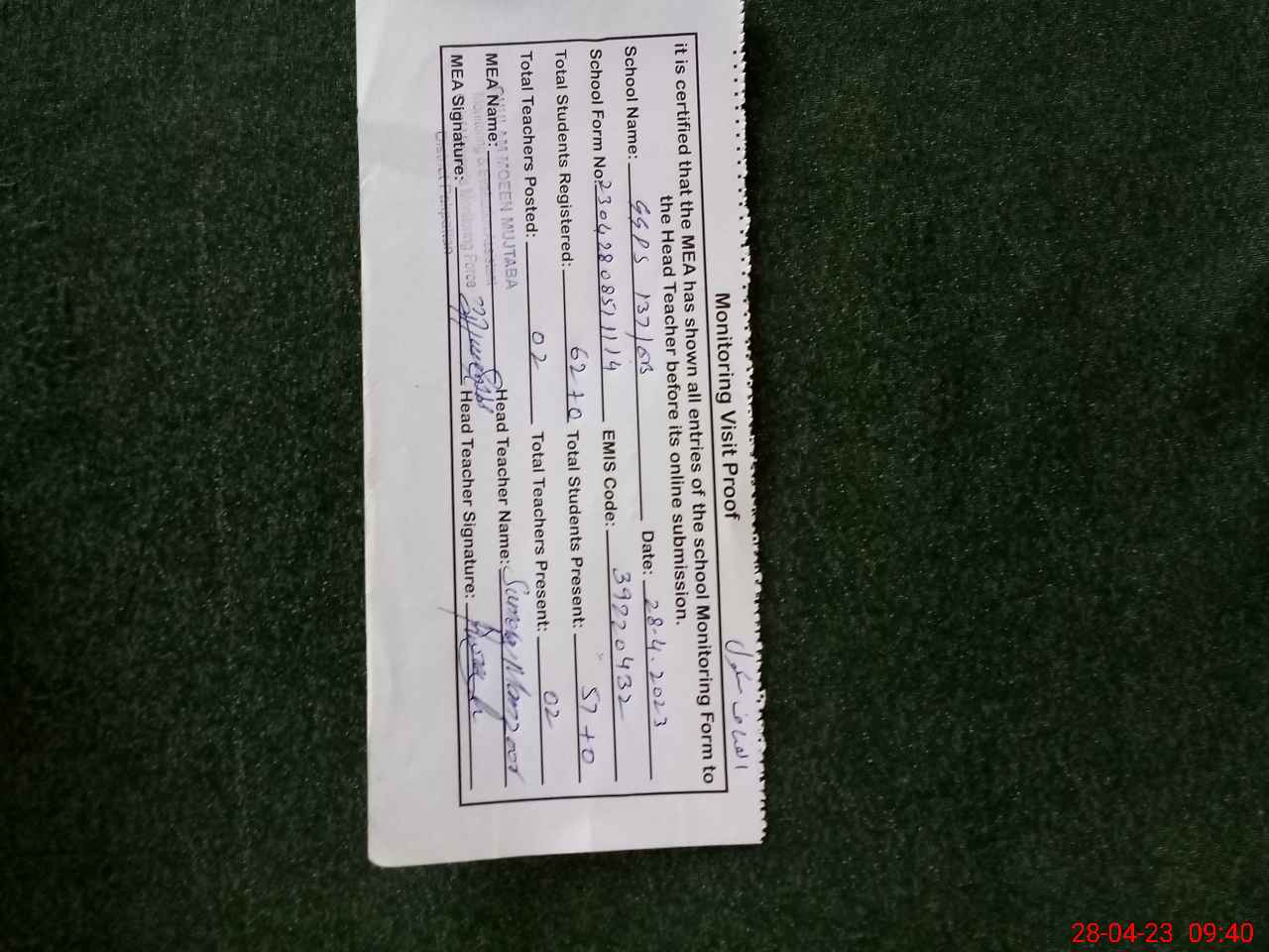 | Monitoring Date: 28-04-2023 | Start Time: 28-04-2023 08:51 AM | End Time: 28-04-2023 09:40 AM | Name of MEA: Gh**** Mu**** Mu**** (R**** | |