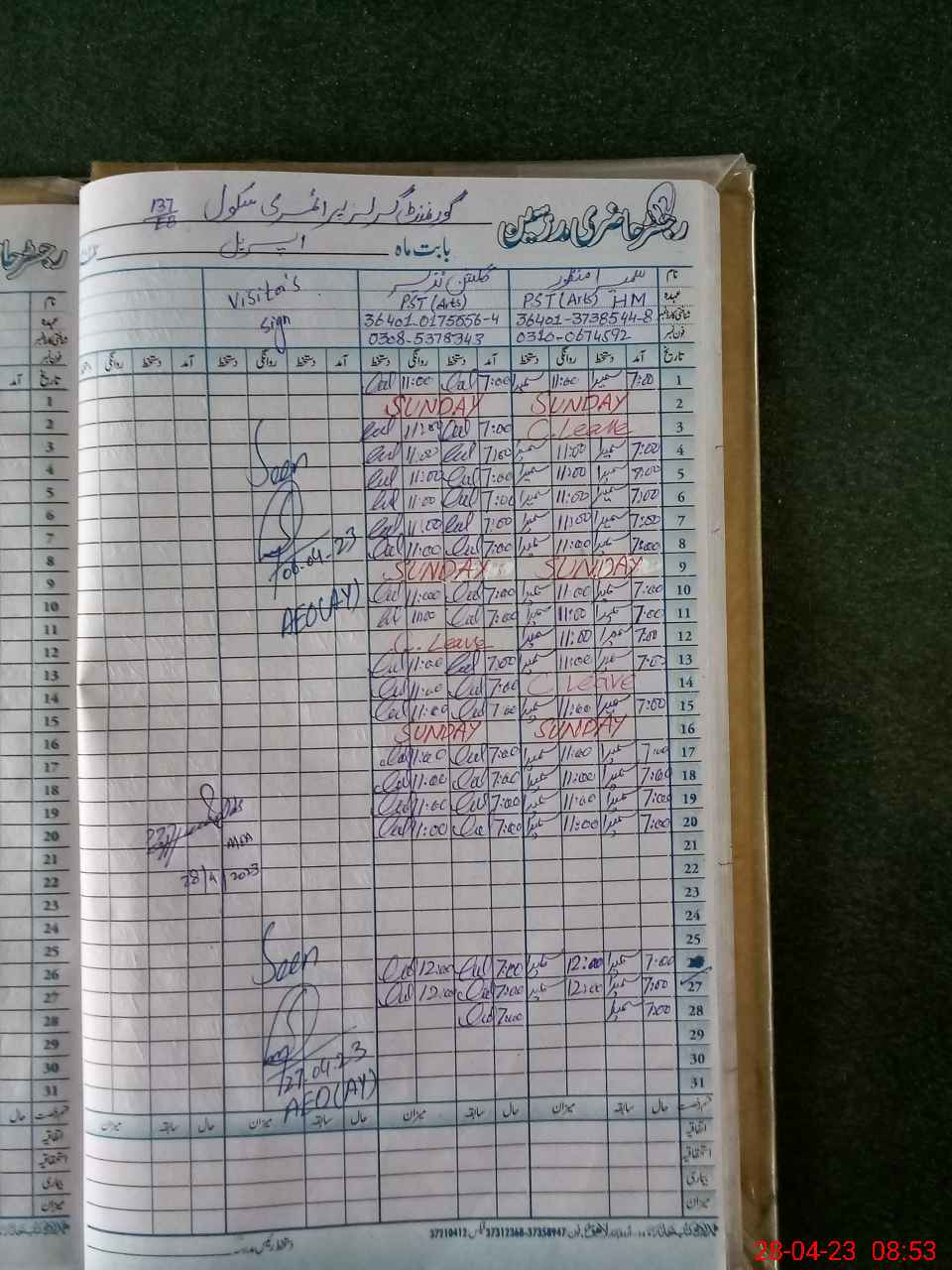 | Name: SU**** MA**** Designation: (School Headmaster's/Headmistress's) PST Phone/Cell Number: 03**** |