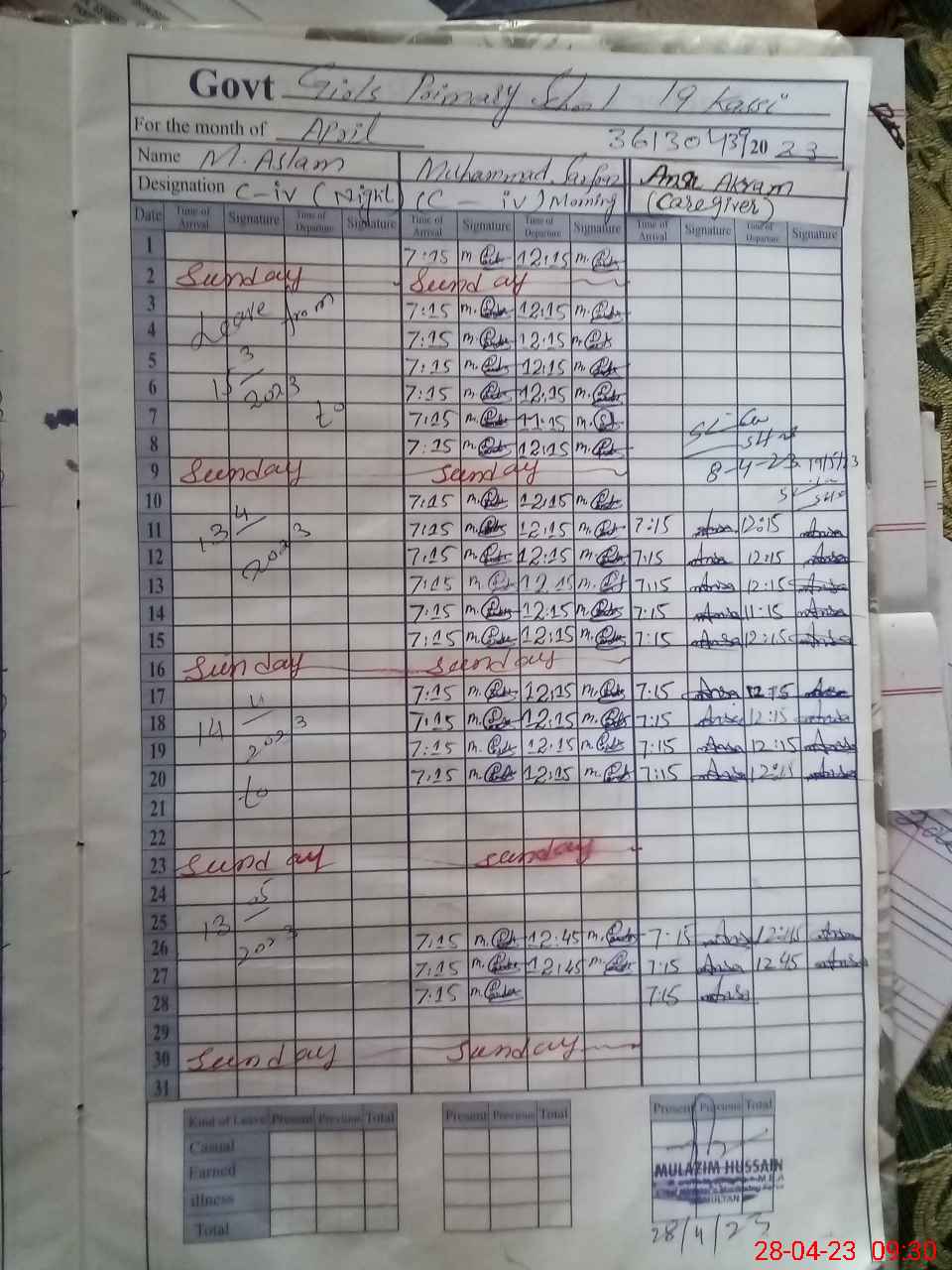 | 00**** | MAs**** | CHOKIDAR | 0 | 0 | 0 | 0 | 0 | 0 | 0 | 0 | 0 | Absent (Un-Authorized) | |