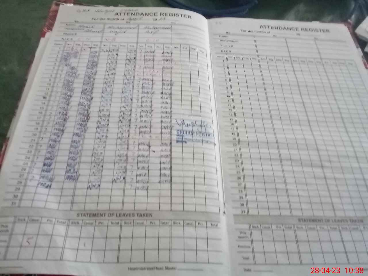 | CNIC | Full Name | Designation | R/C | Absence During Last Calender Month |