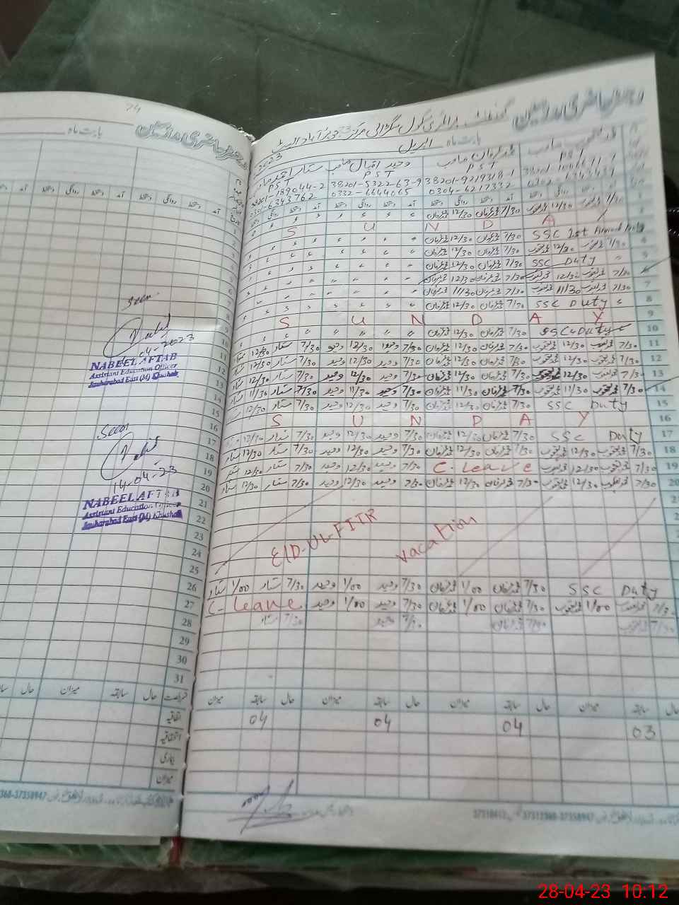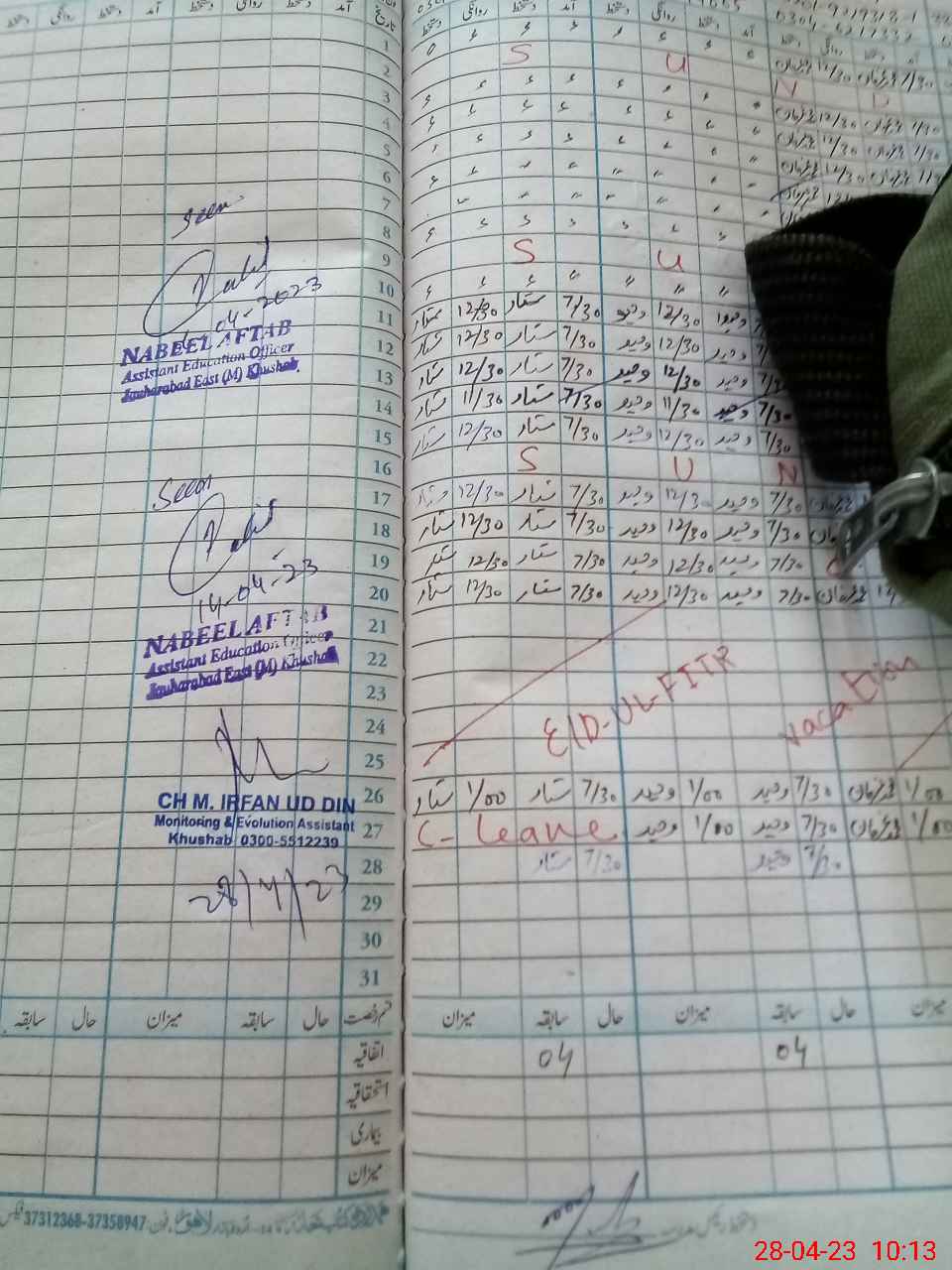 | Name: Mu**** Ir**** Designation: (School Headmaster's/Headmistress's) PST Phone/Cell Number: 03**** |