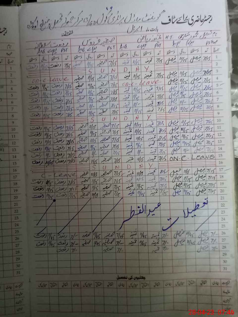 | CNIC | Full Name | Designation | R/C | Absence During Last Calender Month |