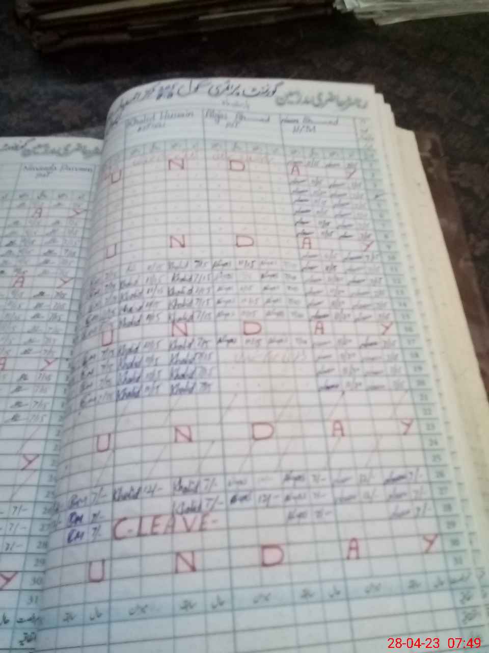 | CNIC | Full Name | Designation | R/C | Absence During Last Calender Month |