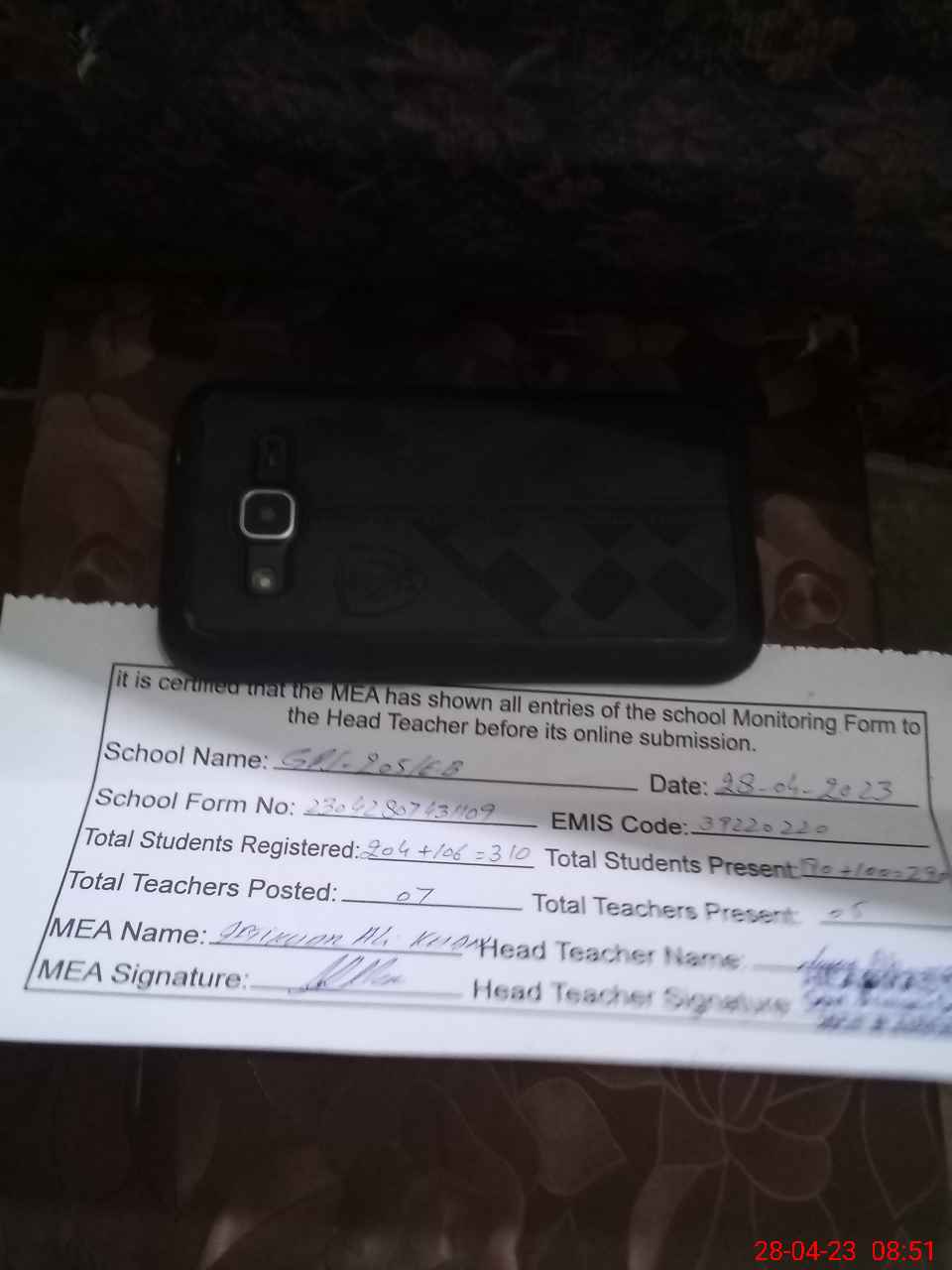 | Attendance Register | Head Teacher | MEA with School | Visit Proof |