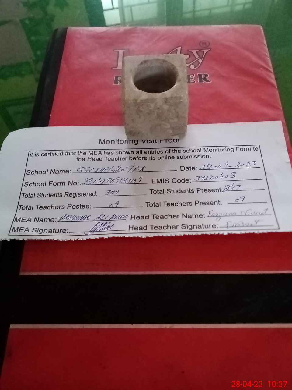 | Attendance Register | Head Teacher | MEA with School | Visit Proof |