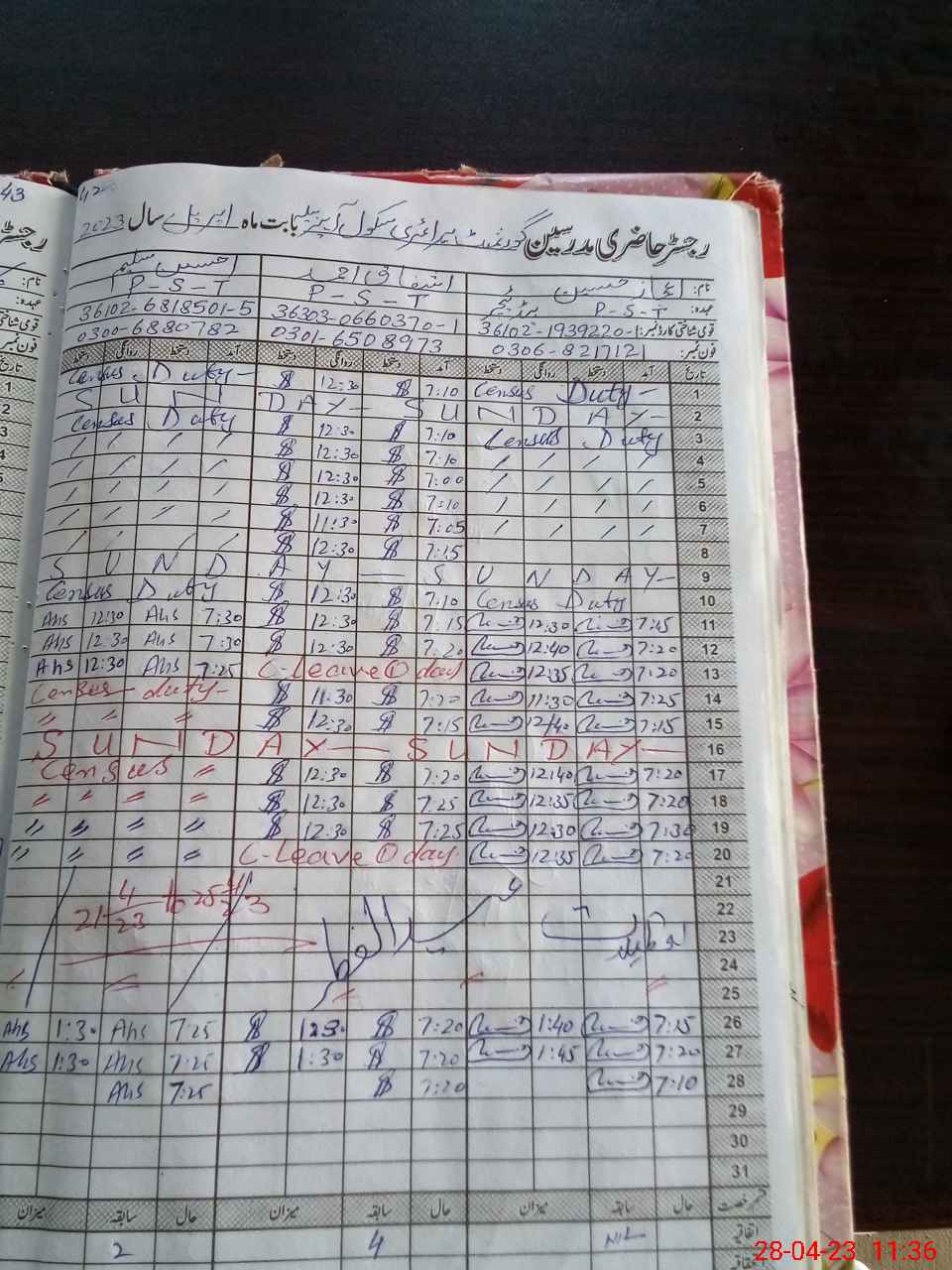 | CNIC | Full Name | Designation | R/C | Absence During Last Calender Month |