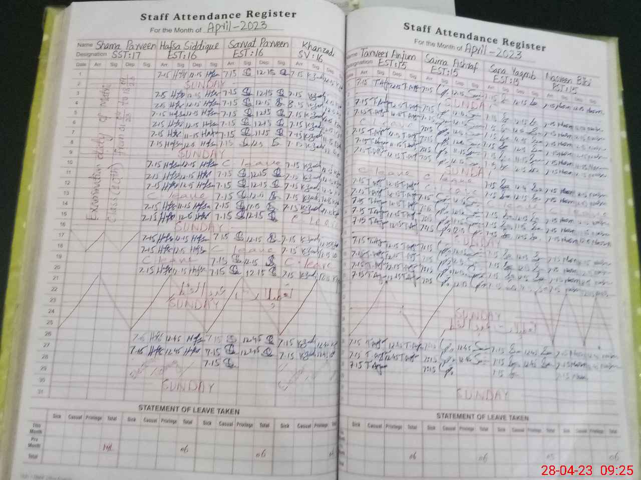 | 31**** | Sh**** Pa**** | Regular | 0 | 1 | 0 | 0 | 0 | 0 | 0 | 0 | 0 | Exam Duty | |