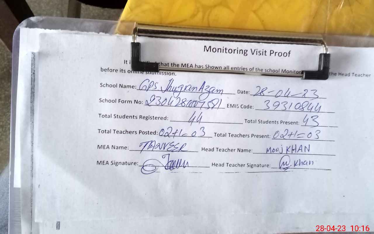 | Attendance Register | Head Teacher | MEA with School | Visit Proof |