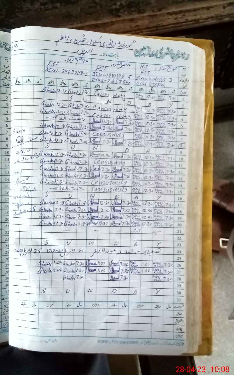 | Name: SA**** HU**** Designation: (School Headmaster's/Headmistress's) PST Phone/Cell Number: 03**** |