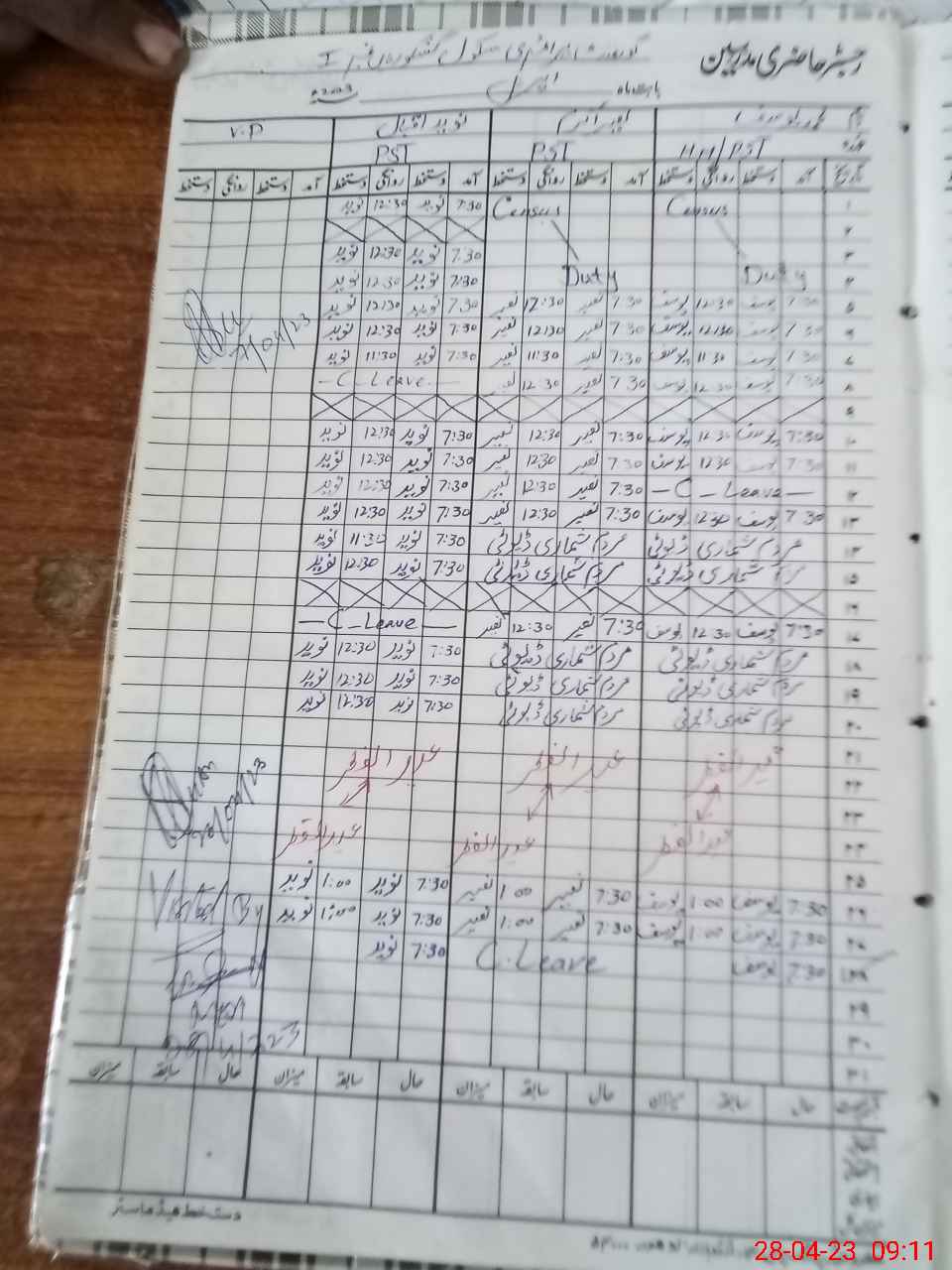 | CNIC | Full Name | Designation | R/C | Absence During Last Calender Month |
