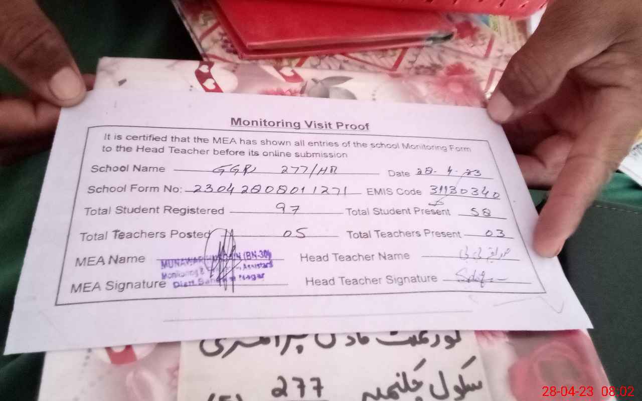 | EMIS Code: 31130340 | Name of School: GGPS CHAK NO 277 HR (E) | |||