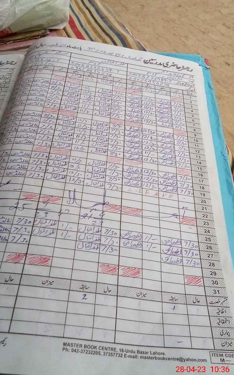 | CNIC | Full Name | Designation | R/C | Absence During Last Calender Month |