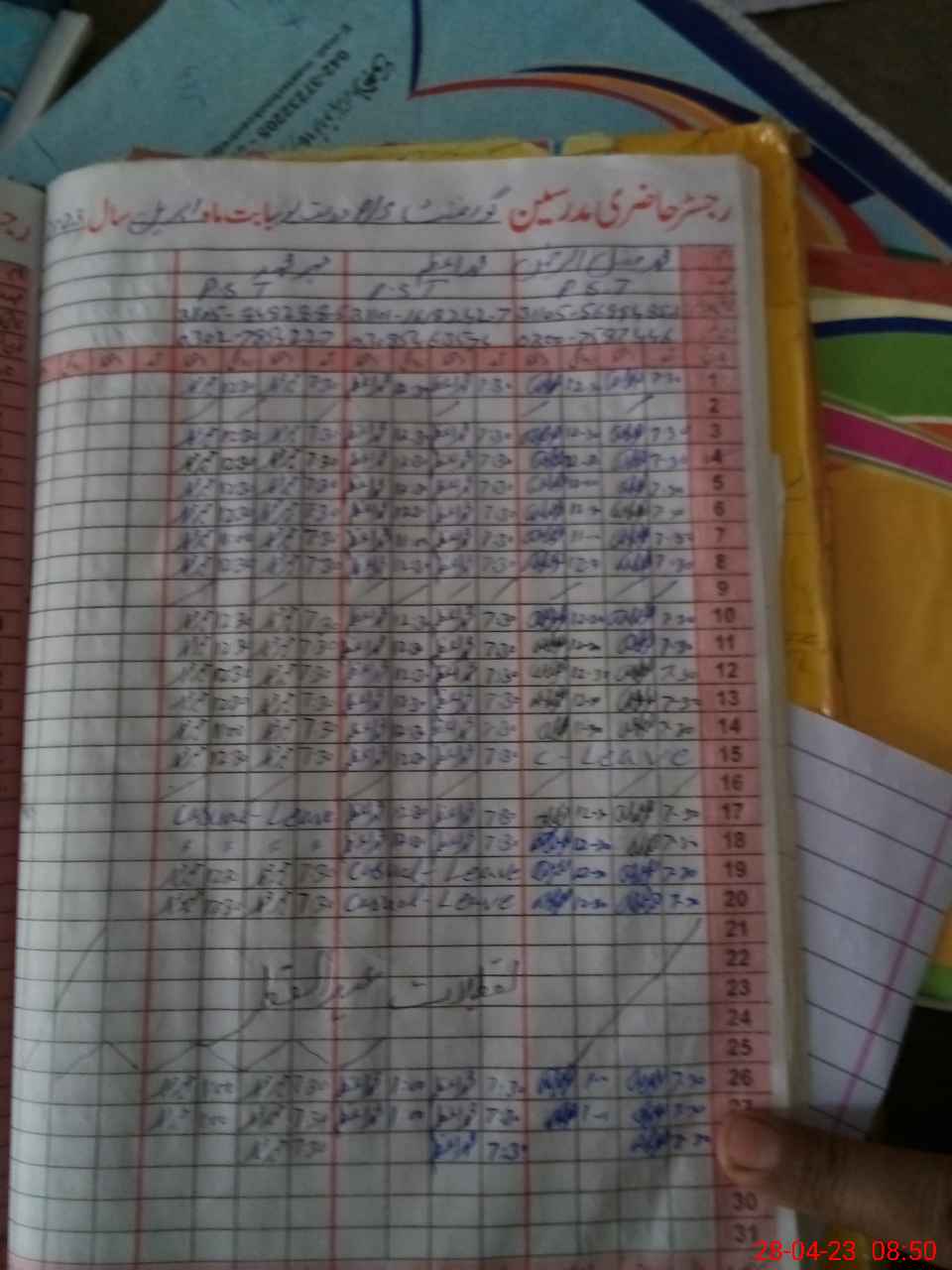 | CNIC | Full Name | Designation | R/C | Absence During Last Calender Month |