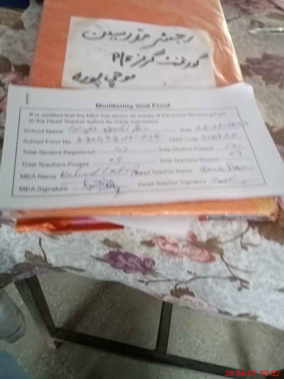 | Attendance Register | Head Teacher | MEA with School | Visit Proof |