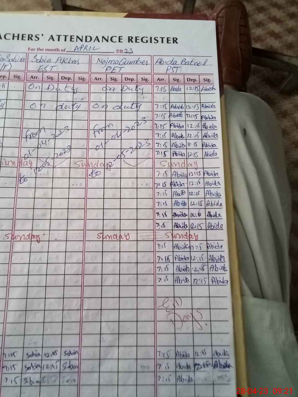 | 33**** | Na**** Qu**** | Regular | 1 | 28 | 0 | 0 | 0 | 0 | 0 | 0 | 1 | Absent (Un-Authorized) | |