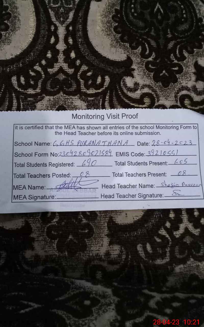 | EMIS Code: 39210551 | Name of School: GGHS PURANA THANA | |||