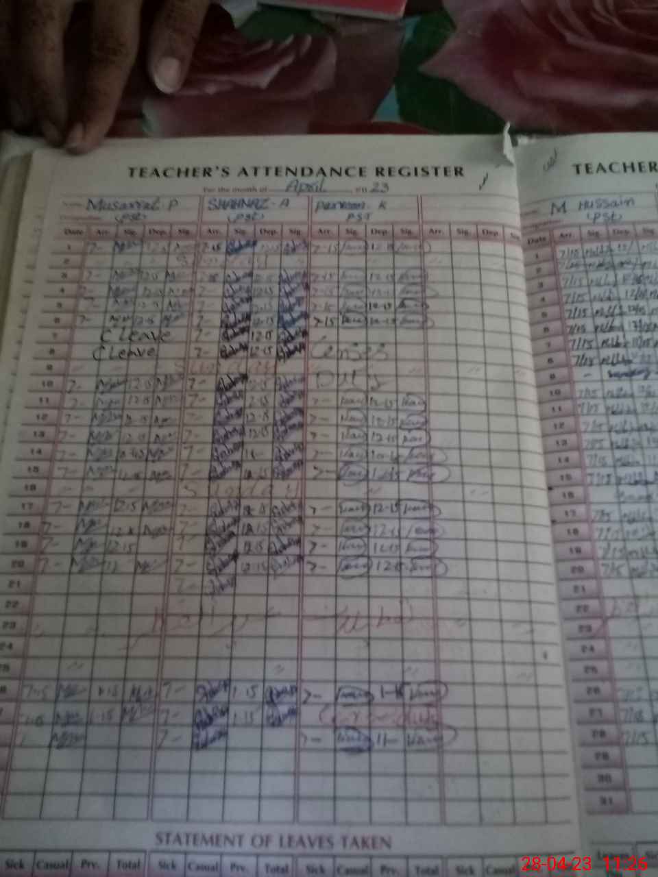 | Leave | Duty | Absent | Maternity | Medical | Ex- Pak |