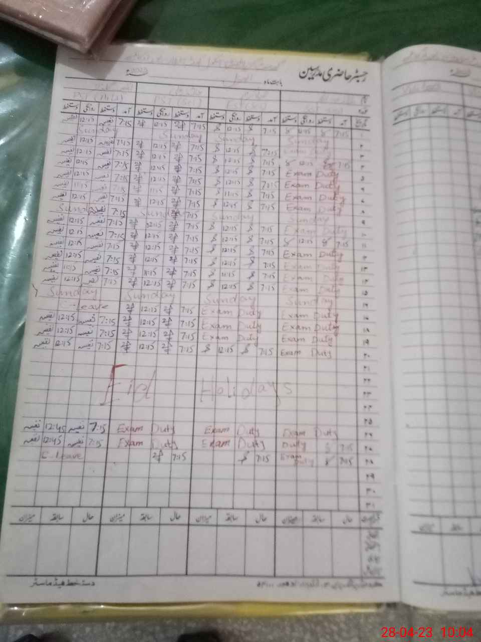 | Leave | Duty | Absent | Maternity | Medical | Ex- Pak |