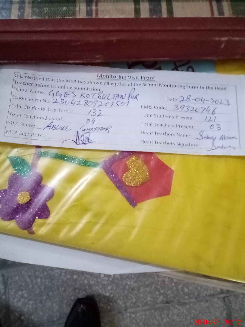 | EMIS Code: 39320746 | Name of School: GGES KOT SULTAN PUR | |||