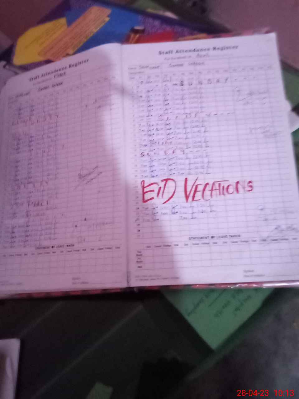 | Leave | Duty | Absent | Maternity | Medical | Ex- Pak |