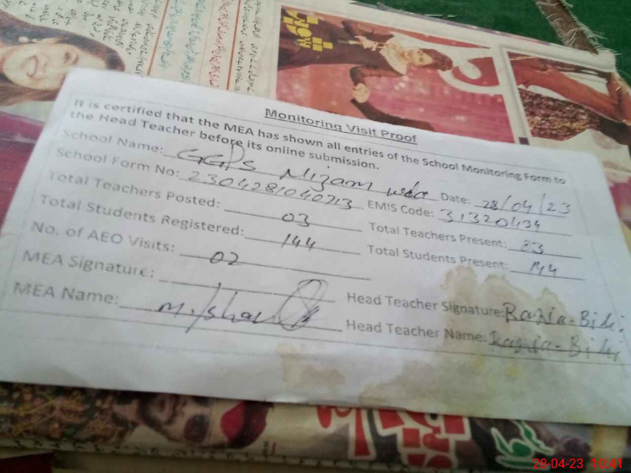 | EMIS Code: 31320434 | Name of School: GGPS NIZAM WALA | |||
