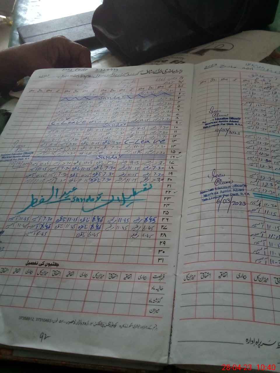 | District: RAHIMYAR KHAN | Tehsil: LIAQATPUR | Markaz: AMIN ABAD - FEMALE | Level: Primary | |