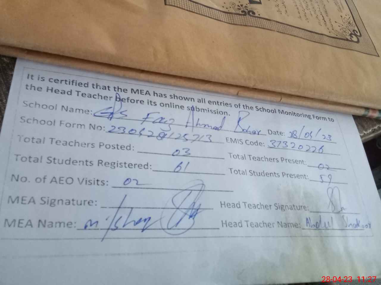 | EMIS Code: 31320226 | Name of School: GPS BASTI FAIZ AHMAD BOHAR | |||