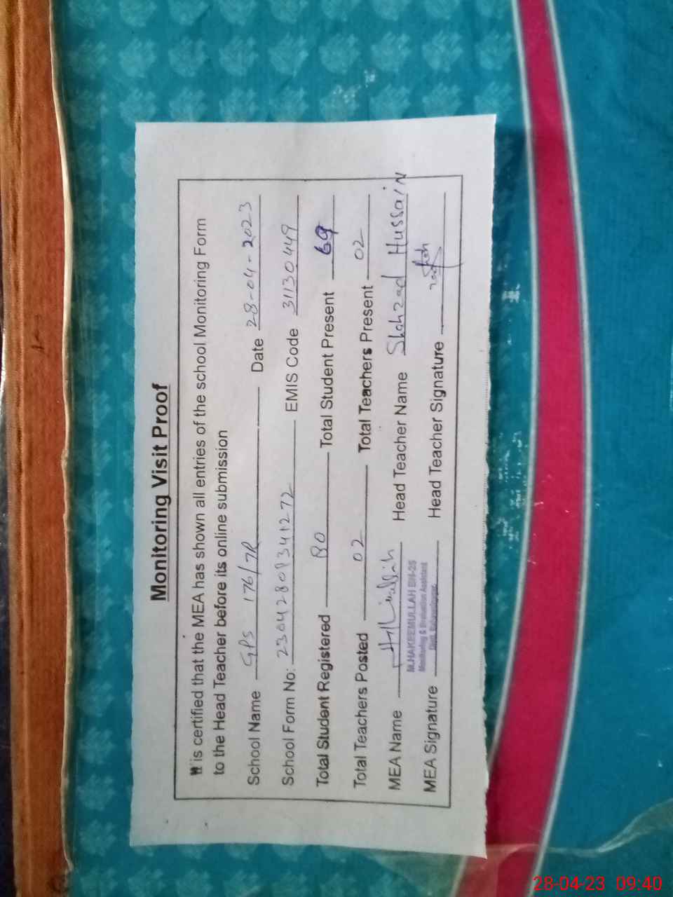 | EMIS Code: 31130449 | Name of School: GPS CHAK NO 176/7-R | |||