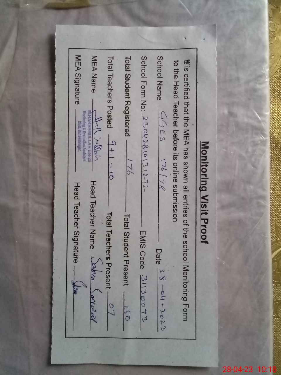| EMIS Code: 31130073 | Name of School: GGES CHAK NO.176/7-R | |||