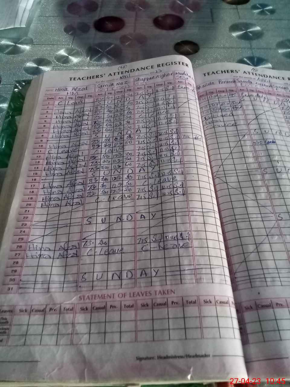 | Leave | Duty | Absent | Maternity | Medical | Ex- Pak |