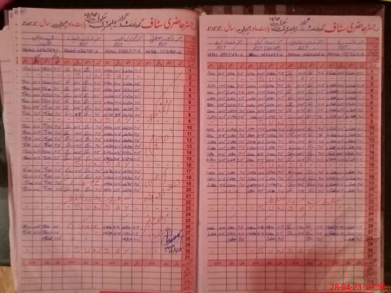 | CNIC | Full Name | Designation | R/C | Absence During Last Calender Month |