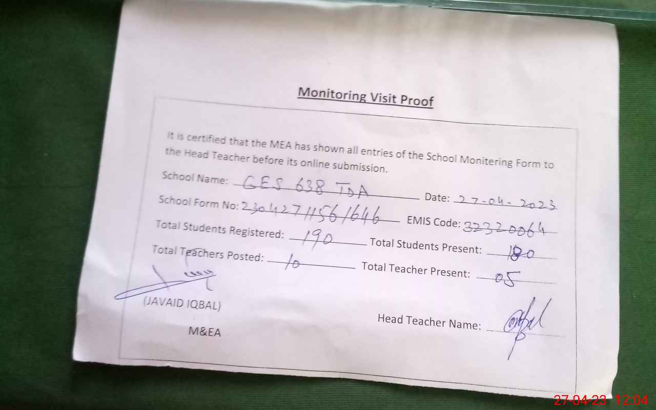 | EMIS Code: 32320064 | Name of School: GES CHAK NO. 638/TDA | |||