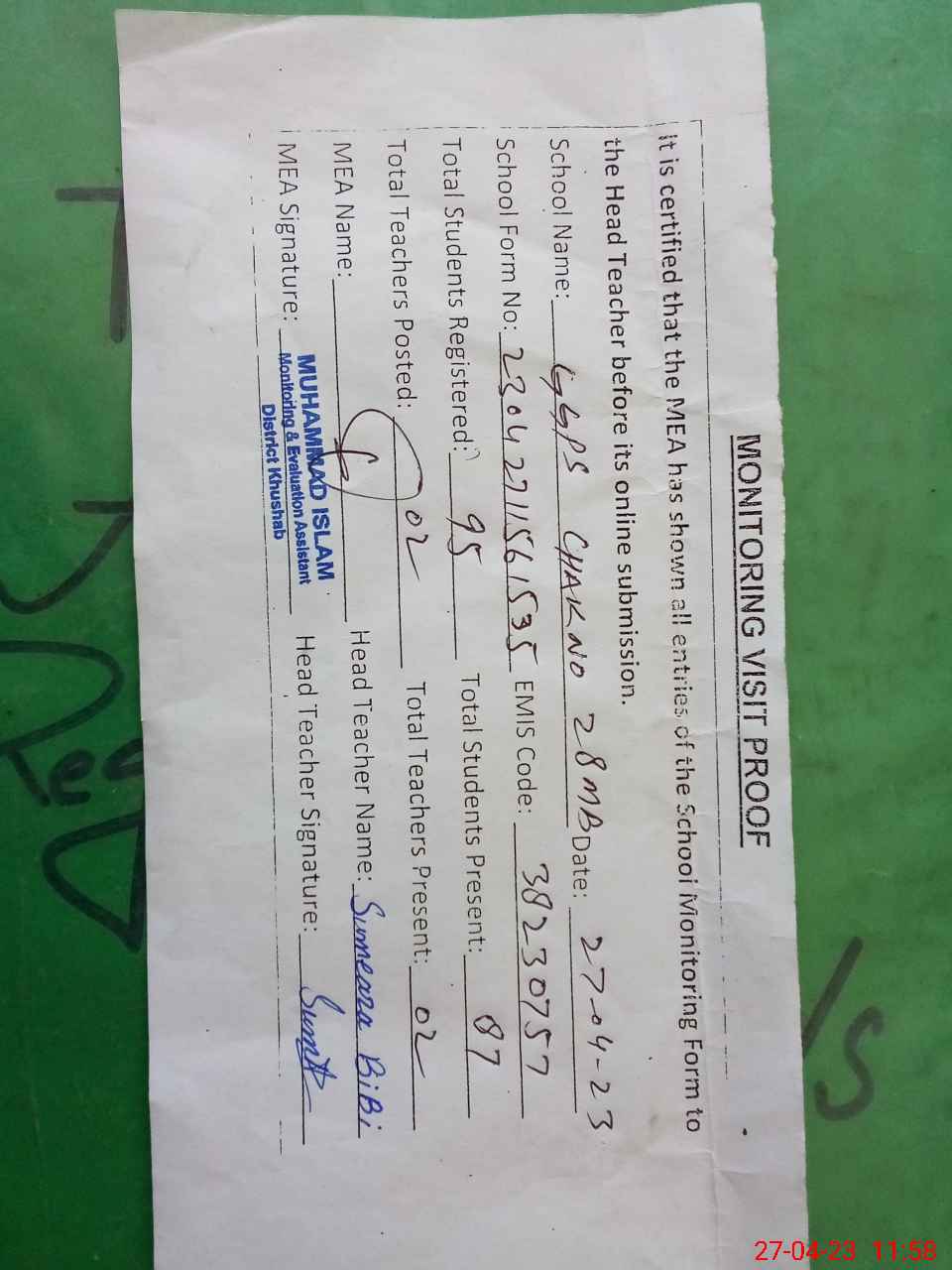 | EMIS Code: 38230757 | Name of School: GGPS CHAK NO 28 MB | |||