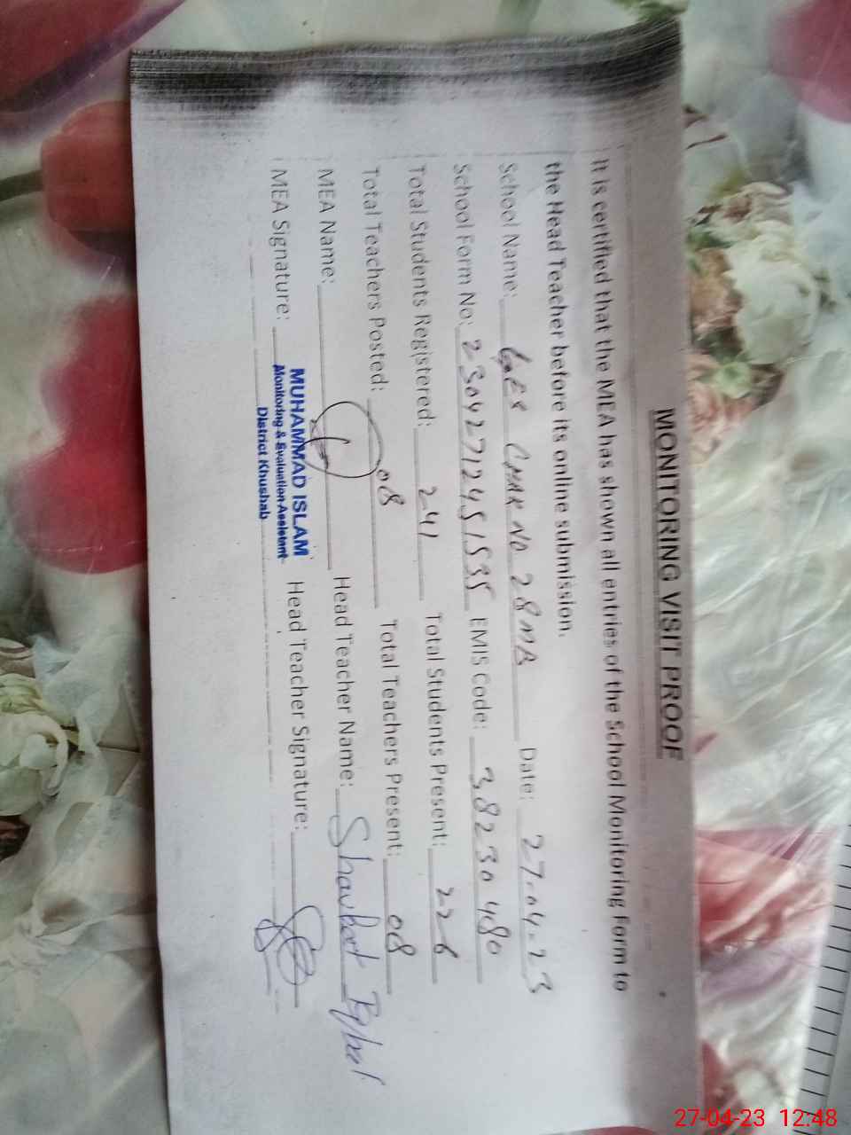 | EMIS Code: 38230480 | Name of School: GES CHAK NO. 28 MB | |||