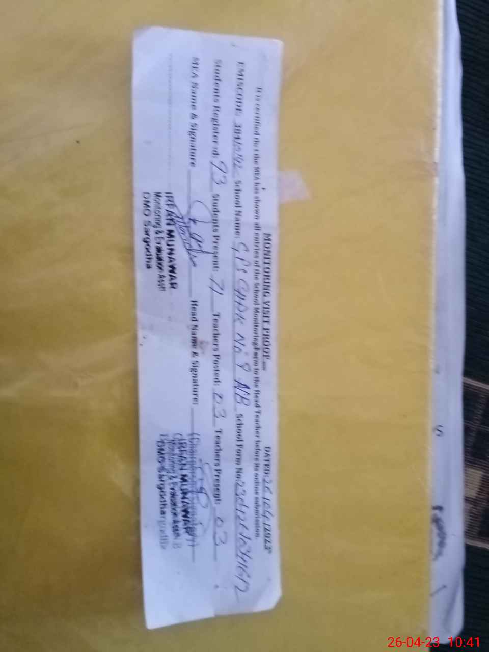 | EMIS Code: 38410142 | Name of School: GPS CHAK NO.9 NB | |||
